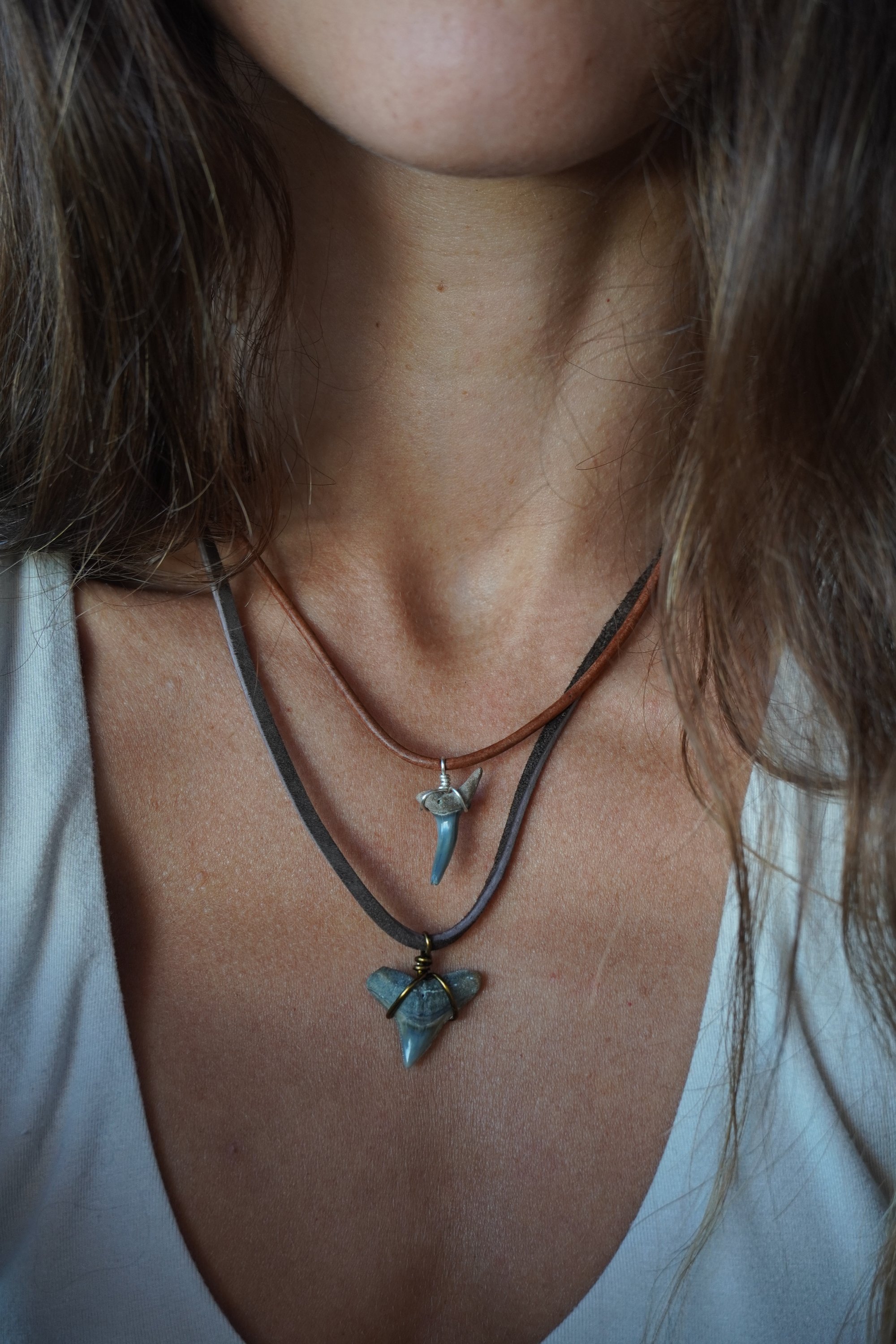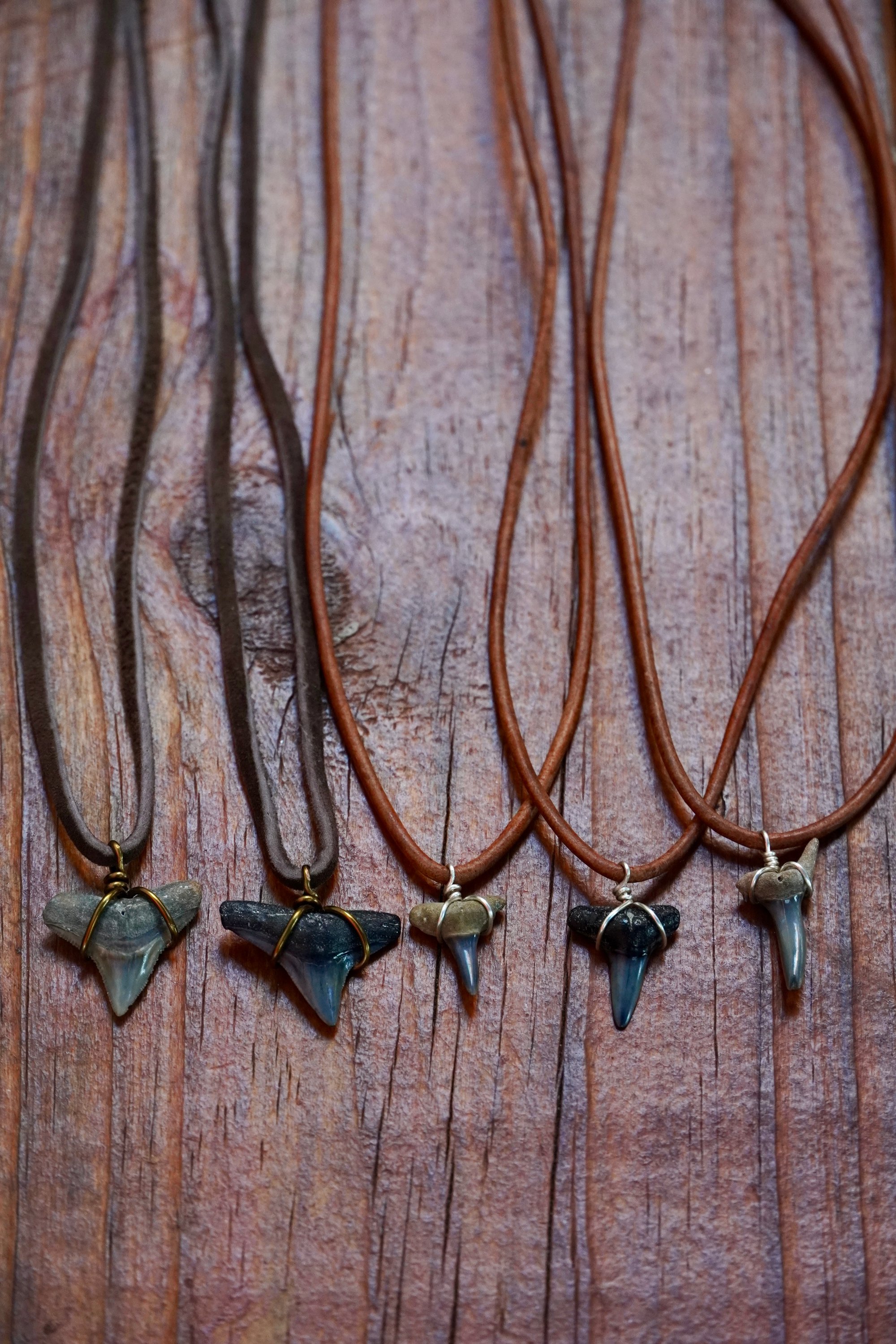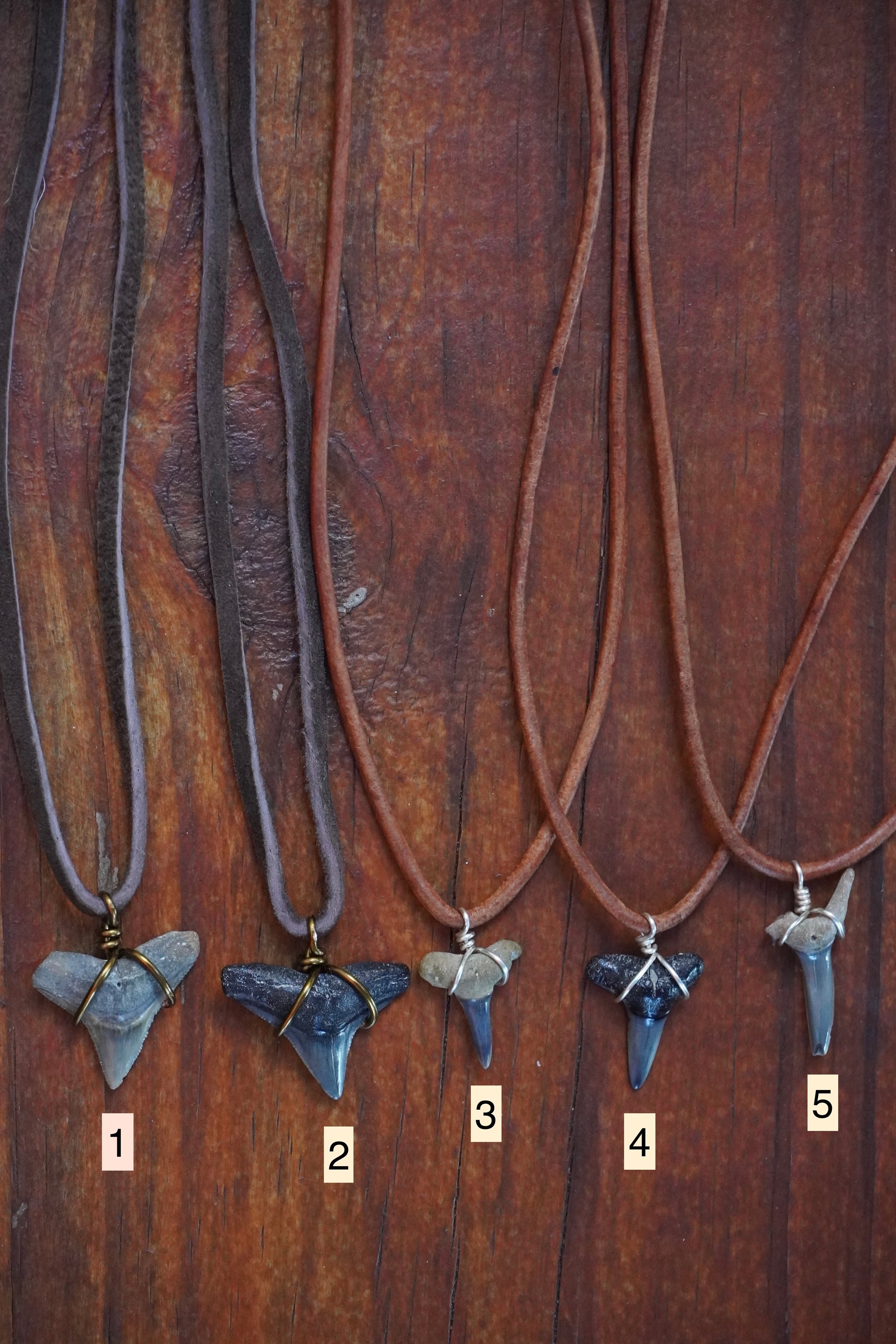 I call shark tooth hunting "adult treasure hunting" hehe - shark teeth found by me! wire wrapped with tarnish resistant materials and attached to an adjustable leather cord.