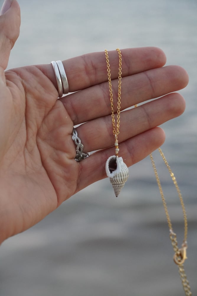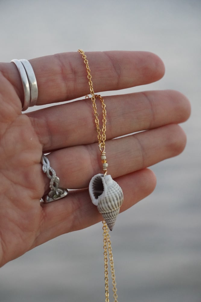 made with a natural sea shell and tarnish resistant materials, this necklace can be layered with others or worn on it's own as a beautiful statement piece š