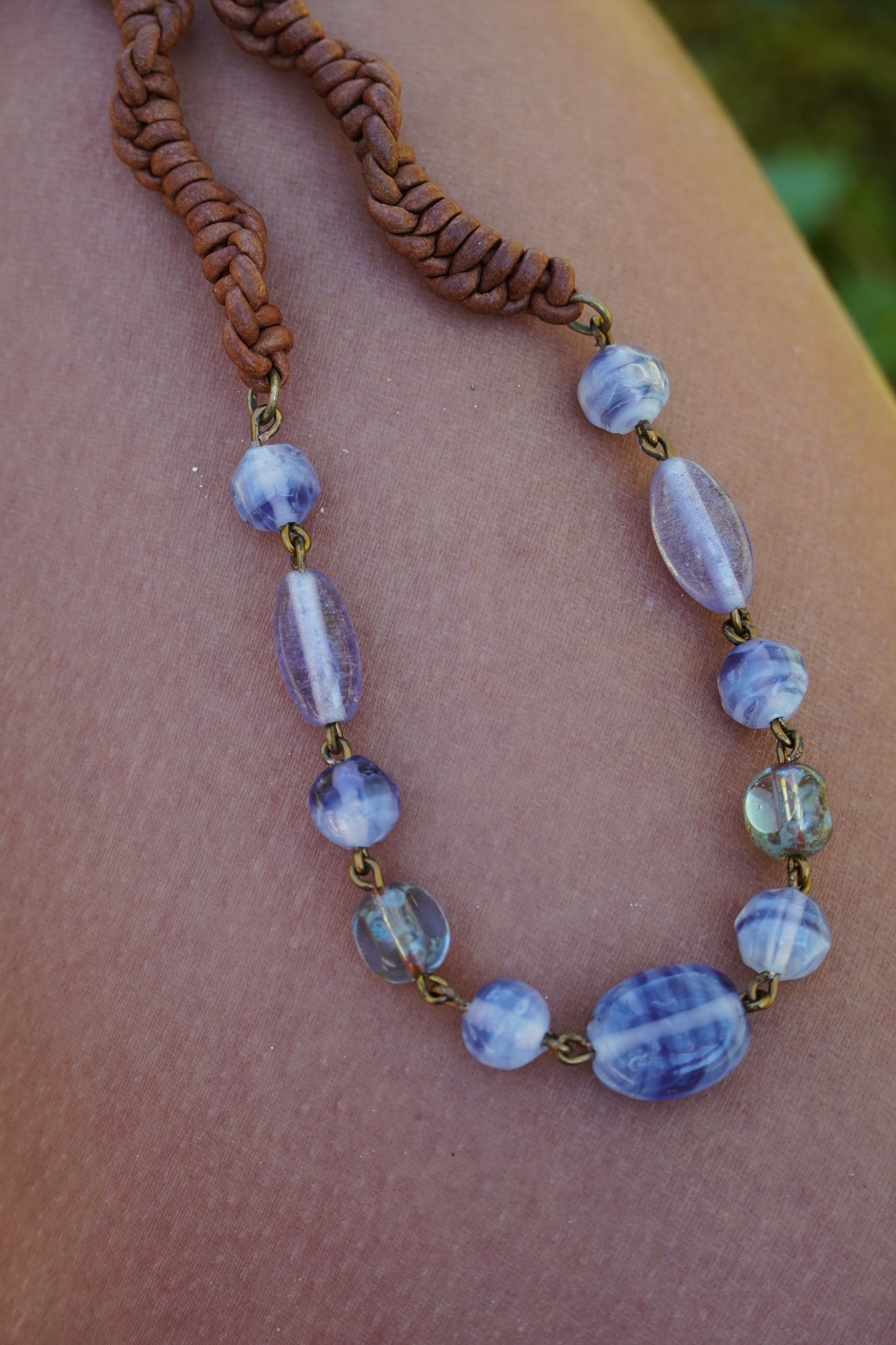 one of one necklace made with leather & glass beads- finished with a copper toggle clasp! *tarnish resistant* š